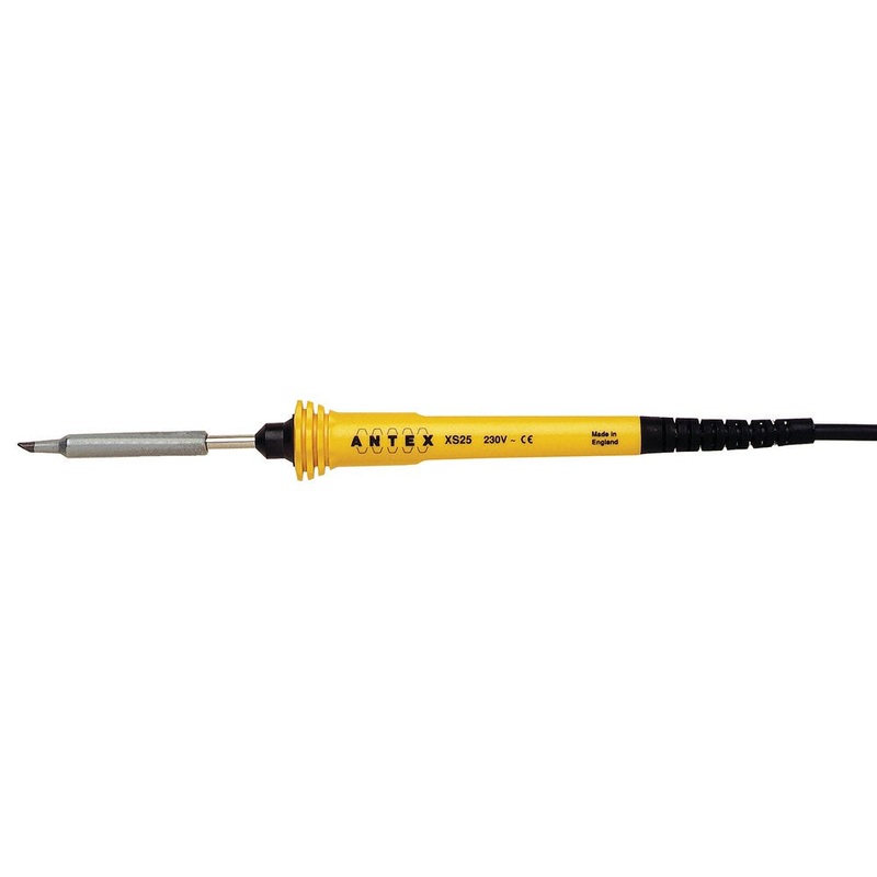 The Antex XS25 soldering iron is ideal for all general soldering applications. Nominal Power - 25 watts 12V, 24V, 115V & 230V versions are available Supplied with long-life iron plated bit Antex 50 bit is fitted to this iron (2.3mm) Use 50 series replaceme