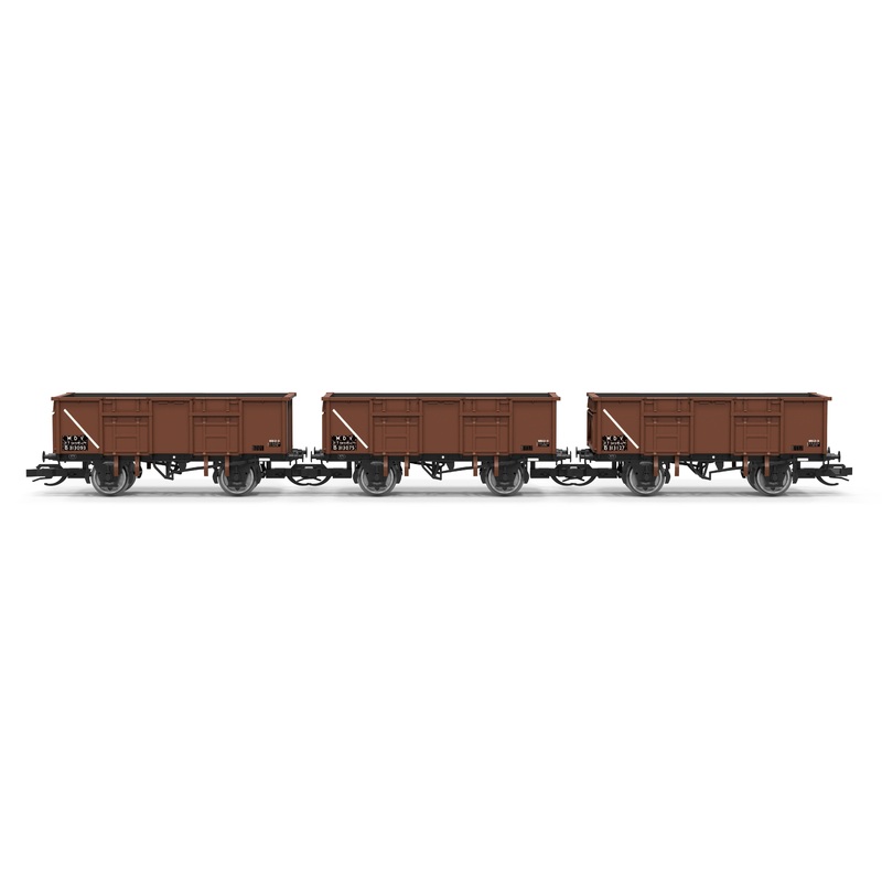 This triple pack of authentic, highly detailed Hornby TT:120 models replicate these spacious wagons, with TOPs-era bauxite (red/brown) livery, white markings and running numbers 313093, 313075 and 313127.
