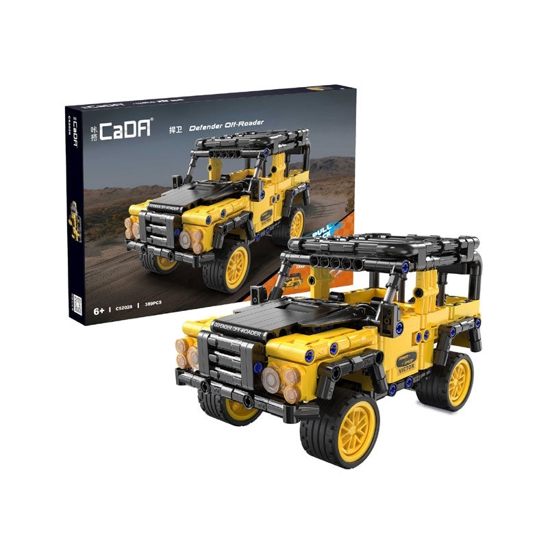 The 'Defender Off-Roader' by CaDA Bricks is a cool looking pickup truck made up of 389 pieces in 1:18 scale. It is equipped with a pull-back motor that allows the model to be propelled forwards. The design includes chunky tyres to complete the serious off-