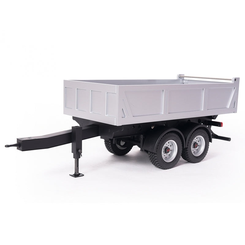 Features: Steel profile frame (laser cut and laser welded) Tipper body made from Rigid PVC (gray) 8-fold ball bearingwheels Fulda Variotonn Wide Off road-Tire 7-section tail lights Trailer axle w/ air ride dummy Automatic back wall locking (2-Hook)wheels
