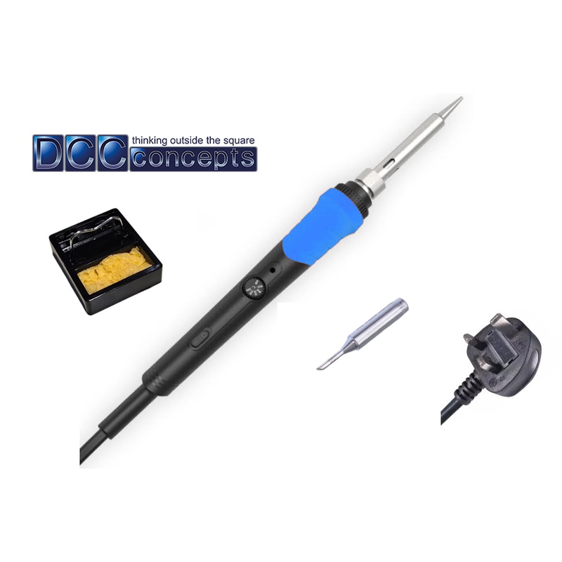 DCC Concepts DCS-AT571 65 Watt Hand-Held Soldering Iron & Essentials AT571 65 Watt Hand-Held Soldering Iron with Temperature Control and Additional Tip The AT571 is a 65 watt temperature-dial controlled soldering iron which is the perfect choice for those