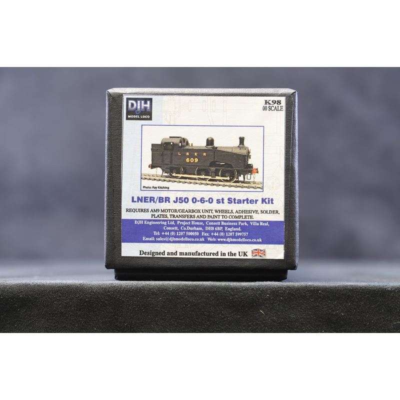 DJH OO K98 LNER/BR J50 0-6-0st Starter Kit Our reference:CRW705-127 Model condition Brand new Requires AM9 motor/gearbox unit, wheels, adhesive, solder, plates, transfers and paint to complete To purchase the motor/gearbox unit please click here. Sale Incl