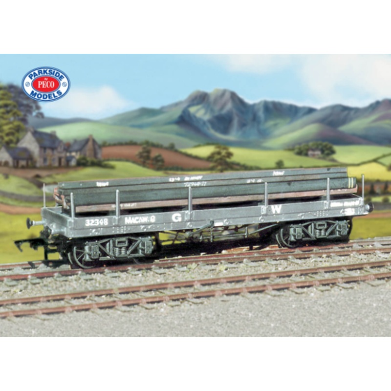 These wagons were used for carrying rail, girders, sawn timber, trees, telegraph poles, pipes etc. 'Steel girder' load included. Transfers are included; glue and paints are required to complete this model.