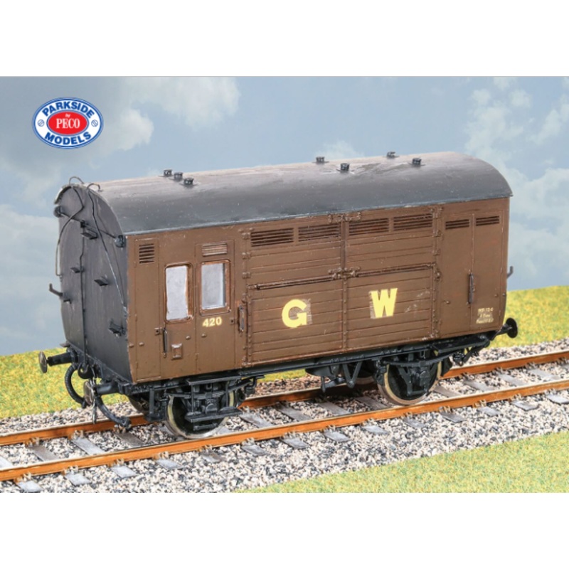 300 of these vehicles were built in the 1920s, lasting into the 1950s and 60s. They were used to carry horses to racecourses and stables, often marshalled into passenger and parcels trains. Transfers for GWR and BR. These finely moulded plastic wagon kits