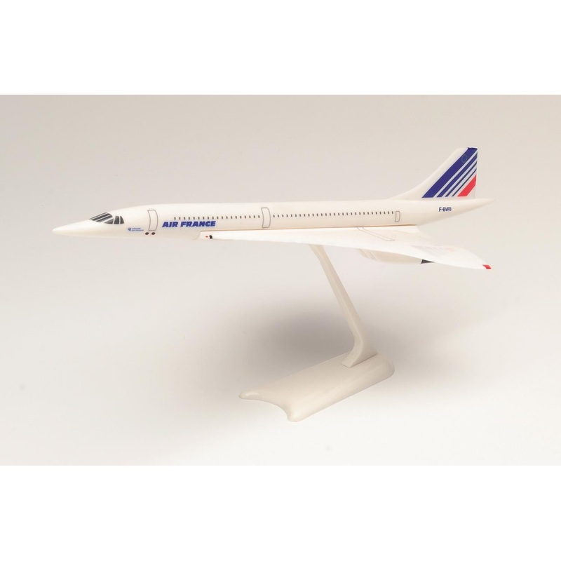 Herpa Snapfit Concorde Air France F-BVFB (1:250) MODEL 1:250 Scale model of Concorde produced in finely detailed High Quality Plastic. This model features lots of expertly applied details as based on the prototype. The plastic plug-in models from the SnapF