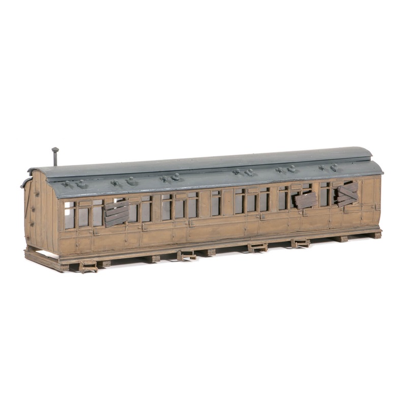 If you have a large goods yard on your layout, this would make a good mess coach for the staff. It could also be used as a dwelling or provide sleeping accomodation on a campsite. Includes clutter; glue and paints required to complete model. Footprint: 195