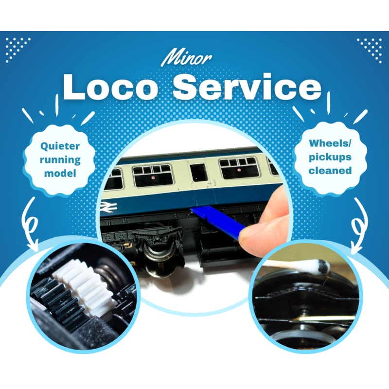 We often get asked if we can service locos at the same time as fitting sound, so we now offer a minor service, for any locos being sent for sound fittinfg or speaker upgrades. We will grease the gears if needed as well as cleaning the wheels and all the pickups to improve running.