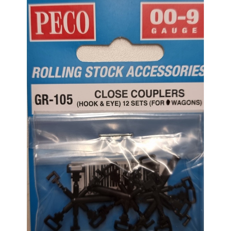 PecoGR-105 OO-9Close Couplers PECO GREAT LITTLE TRAINS OO-9 CLOSE COUPLERS These semi-permanent close-couplings fit in the NEM pockets on all our 009 rolling stock. They can replace the conventional 009 hoop-and-loop couplings by pulling them out with fine