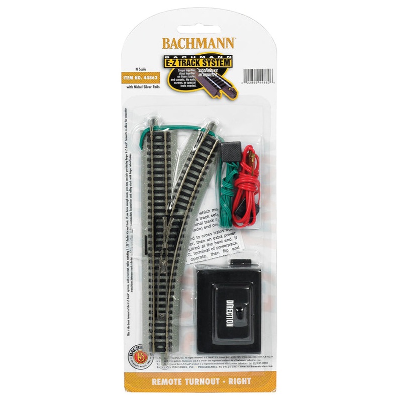 This is the basic turnout of the E-Z Track system with a turnout radius matching 11.25″ Radius Curved Track. If you have enough room, you may consider purchasing larger E-Z Track turnouts to allow for smoother transitions between tracks during switching operations, and to accommodate locomotives and rolling stock with longer wheelbases.