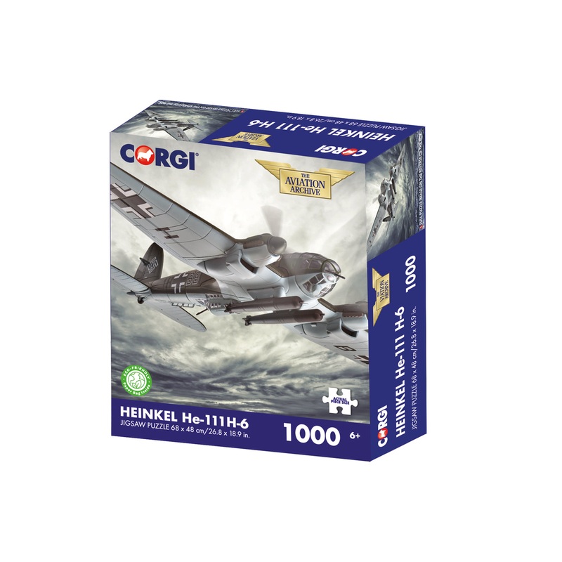 Heinkel He-111 H-6 Prepare for battle with our 1000pc Corgi jigsaw puzzle range showcasing some of the most famous flying machines of all time! Item Code: CG0008 EAN: 5060337331333 Ages: 6+ Actual Size: 68 x 48 cm / 26.8 x 19.9 in.