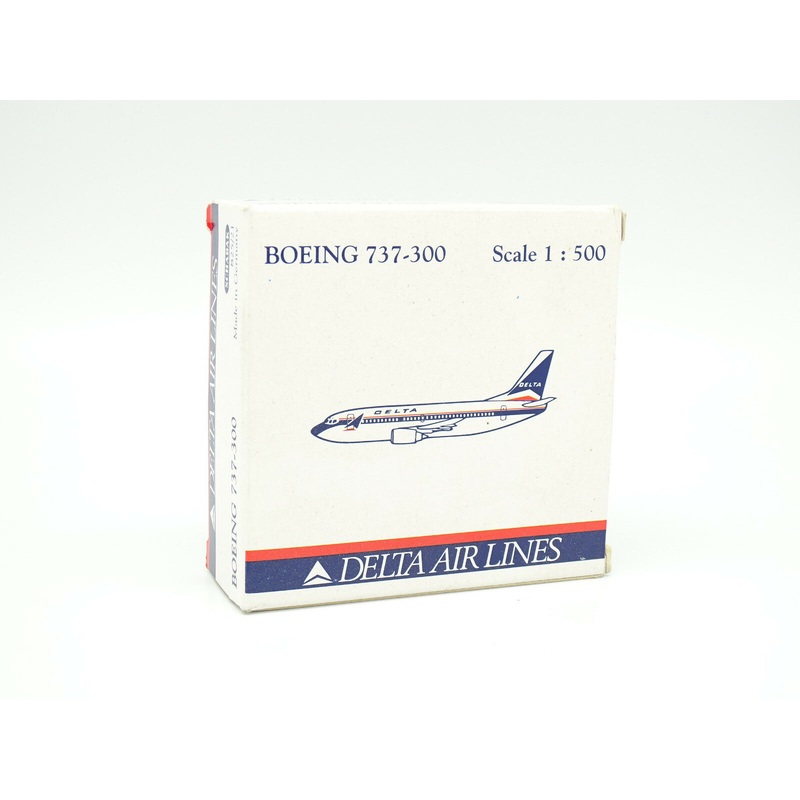 Schabak 1:500 Delta Airlines Boeing 737-300 82521 Product Information: The Boeing 737-300, a popular mid-size jet, has been a significant part of Delta Air Lines' fleet, particularly for short and medium-haul routes. It's known for its reliability and effi
